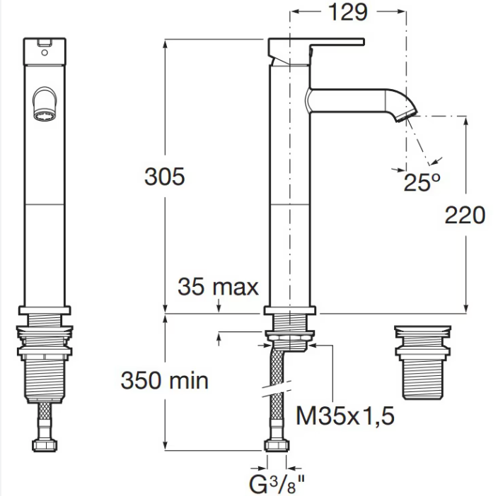The Roca Carelia Cold Start Tall Basin Mixer combines height and eco-friendly innovation for bowl installations. Its Cold Start feature promotes energy savings, while the tall, graceful design adds sophistication to your bathroom. Ideal for those who value both environmental responsibility and refined style.